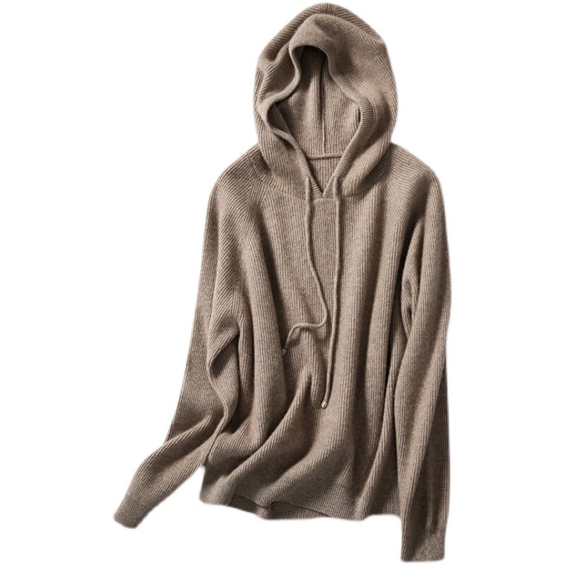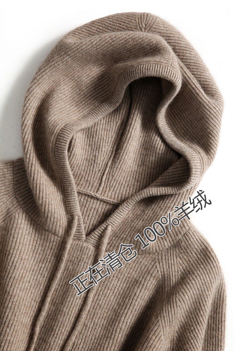 羊毛套头连帽纯色针织衫