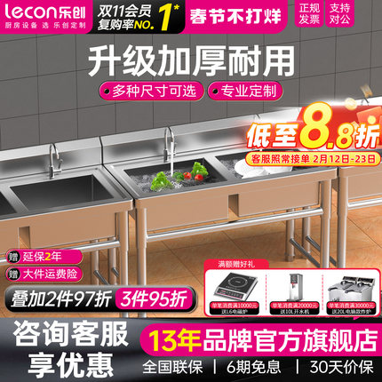 乐创商用洗碗池不锈钢水槽单双槽洗碗盆洗菜池洗刷台厨房白钢定制