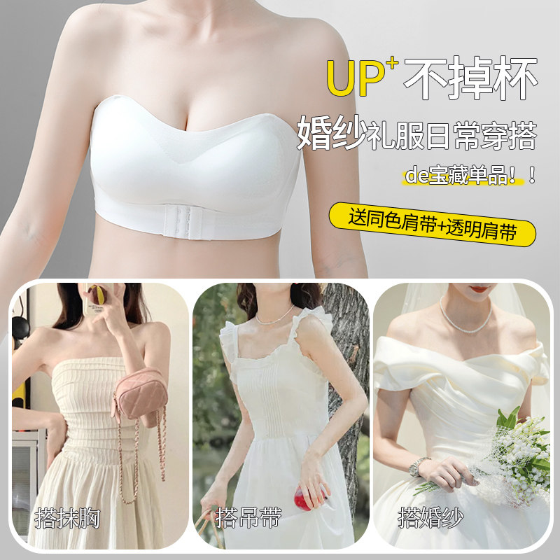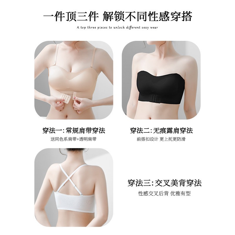清仓抹胸无肩带内衣女小胸厚杯显大防滑防走光夏裹胸前扣隐形文胸