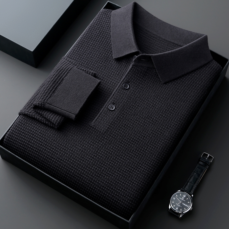 利郎羊毛T恤男士秋冬针织打底衫翻领长袖100%羊毛高端Polo衫毛衣