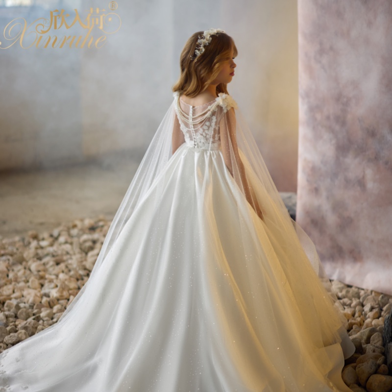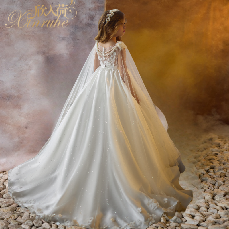 欣入荷公主裙女童高端生日礼服花童主持人走秀白色演出服