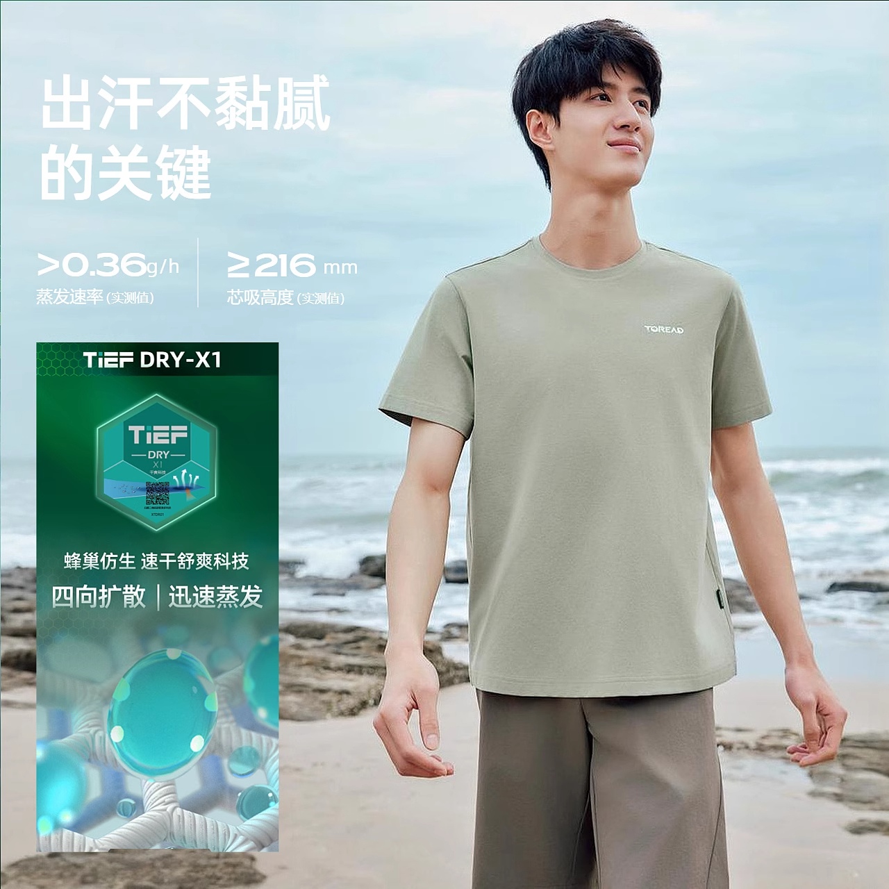 探路者速干衣春夏新款圆领户外运动透气轻薄男女登山短袖弹力T恤