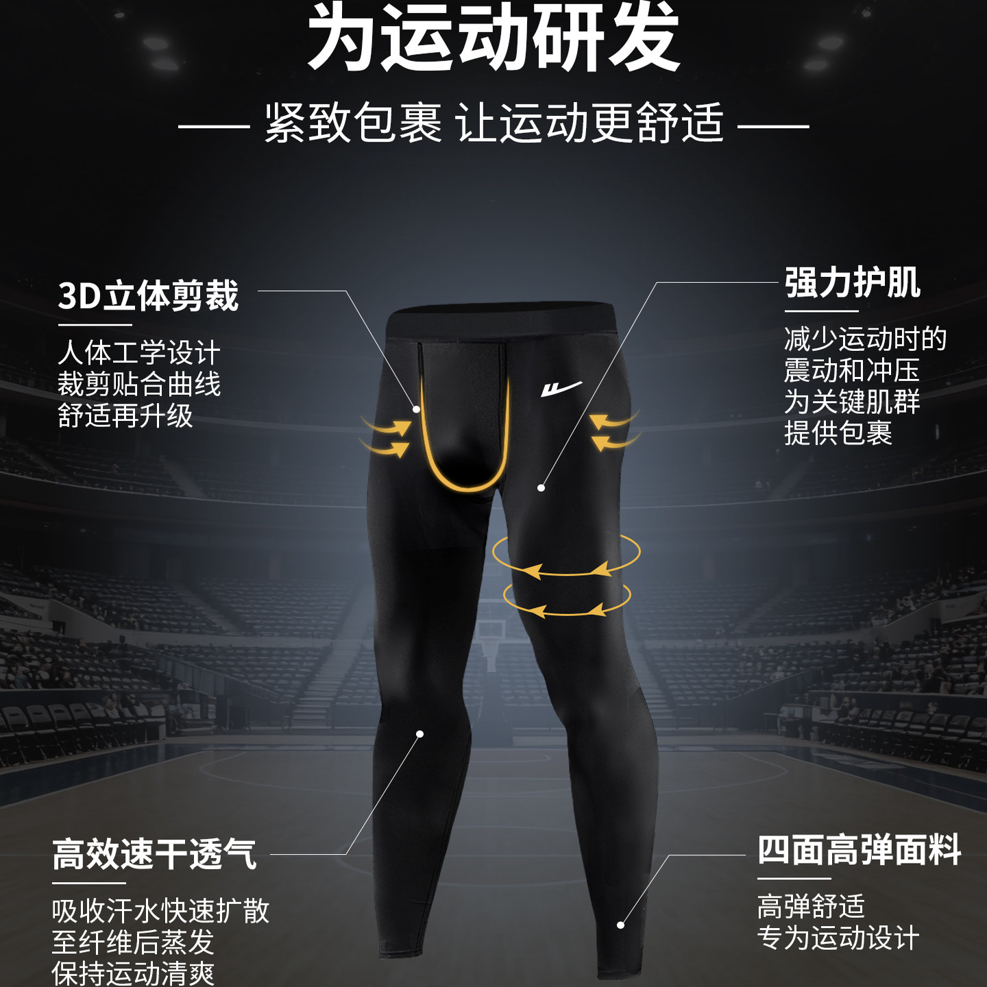 回力紧身裤男士高弹训练裤压缩跑步运动健身篮球田径速干打底长裤