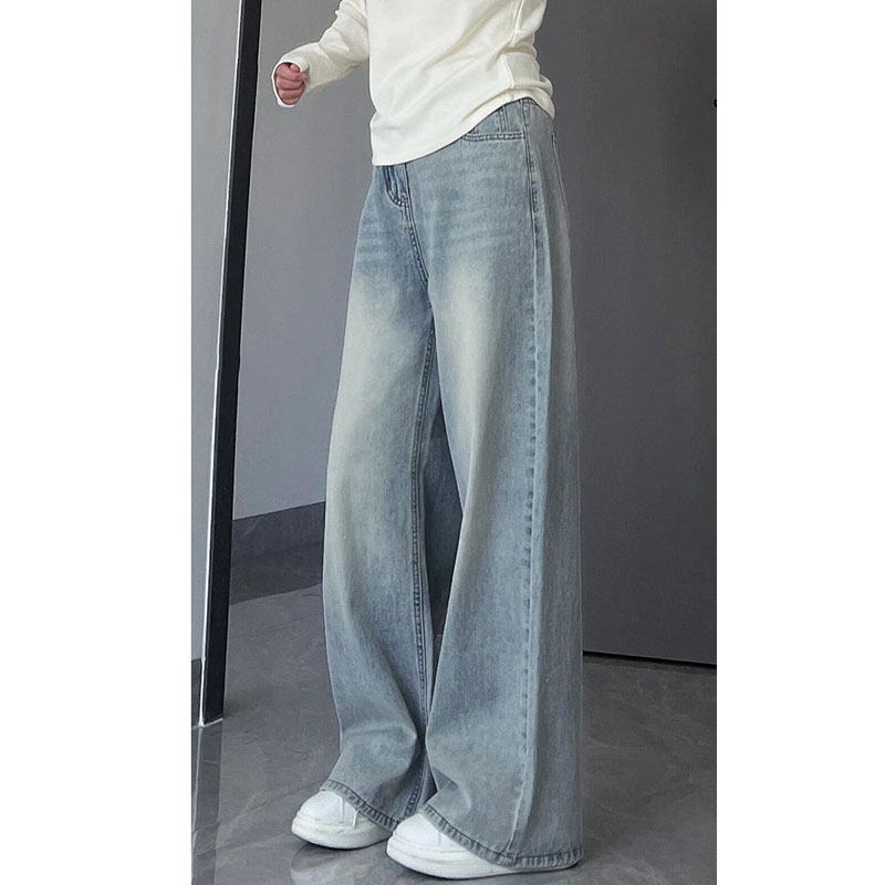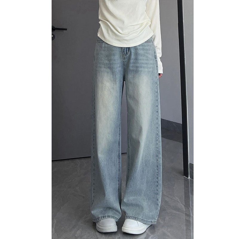浅色直筒牛仔裤女秋季新款大码胖mm宽松显瘦垂感梨形身材阔腿裤子