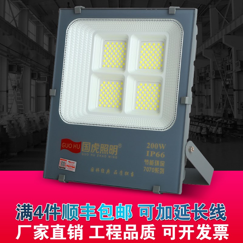 国虎led投光200W100瓦户外防水超亮射广告工地室外车间探照泛光灯