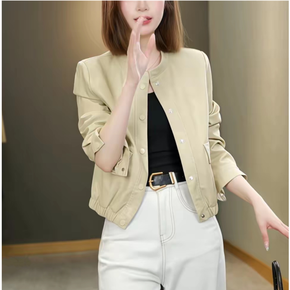 生哥家 半卖半送!商场300+!超软生态皮女士立领短款皮衣外套