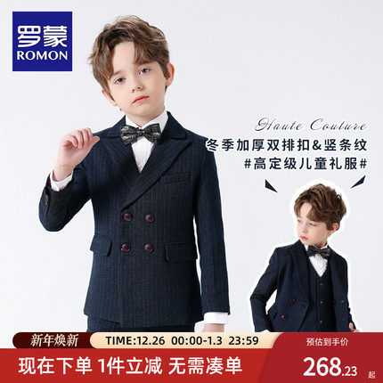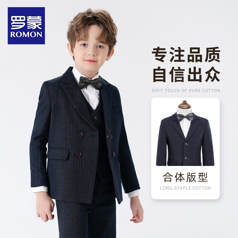 罗蒙儿童西装套装男童花童礼服帅气小西服中大童钢琴演出服英伦风