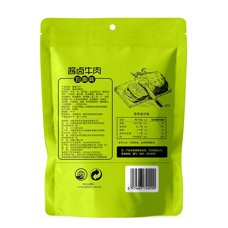 科尔沁酱卤牛肉五香味200g熟食腊味酱牛肉菜肴肉干肉脯零食小吃