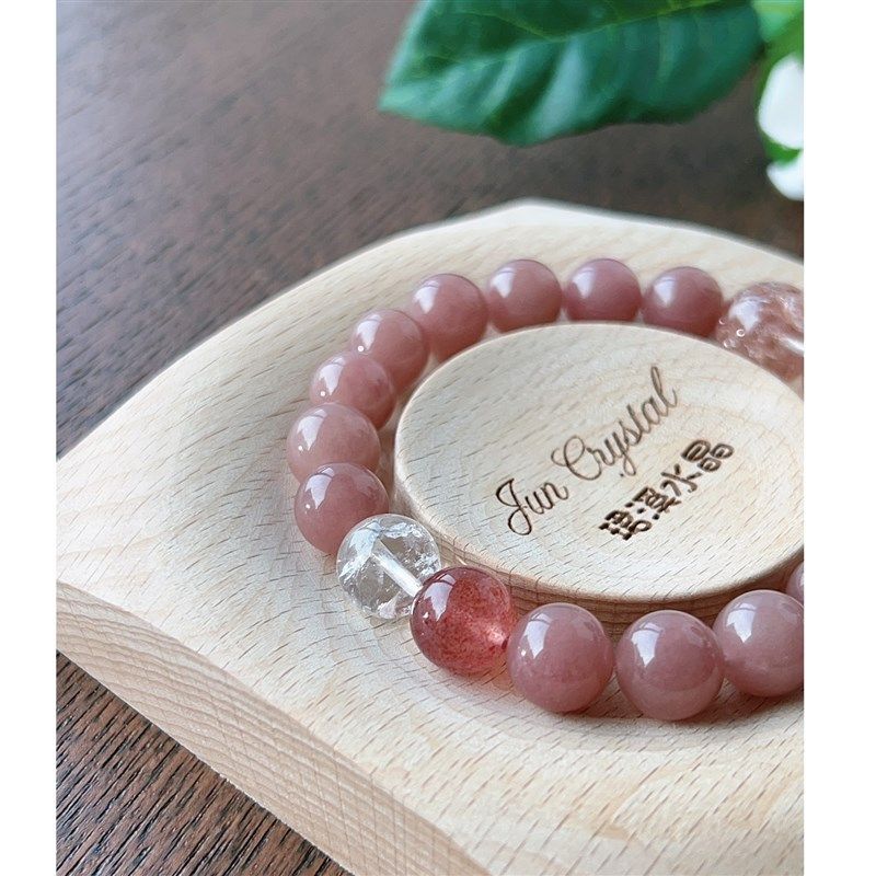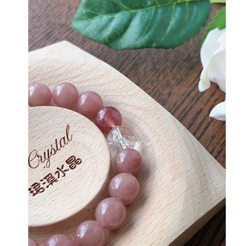 【浪漫之石】天然粉色碧玺色彩玉圆手链超七草莓晶水晶手串女