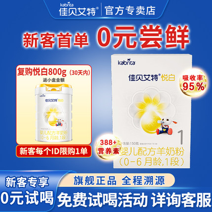 0元试喝丨佳贝艾特悦白1段羊奶粉(0-6月龄)婴幼儿低敏150g试用装