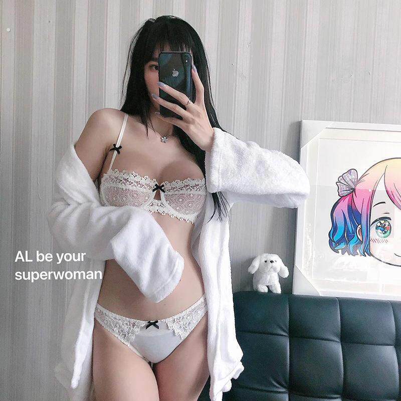 性感蕾丝大胸显小内衣女大码收副乳纯欲超薄款透明半杯文胸罩套装