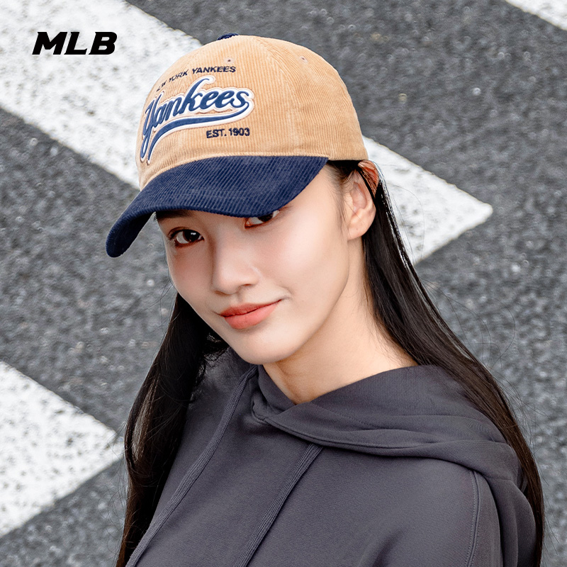 MLB官方 男女情侣撞色拼接显脸小灯芯绒棒球帽24冬季CPVC1
