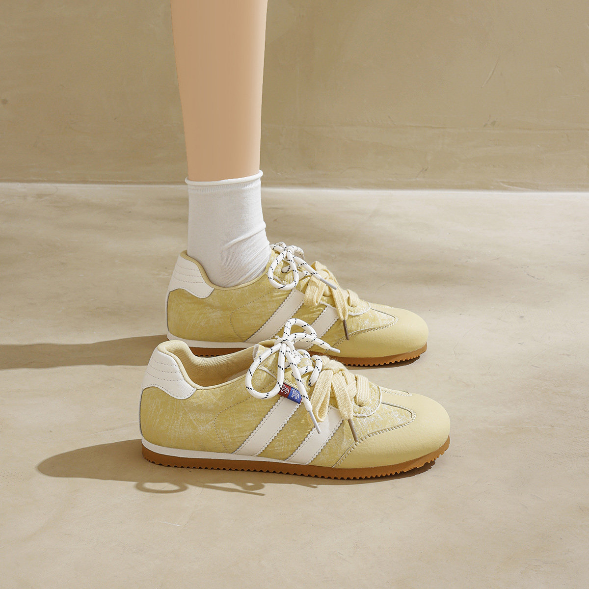戈美其女复古软底德训小白鞋
