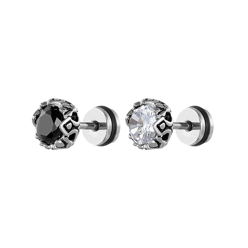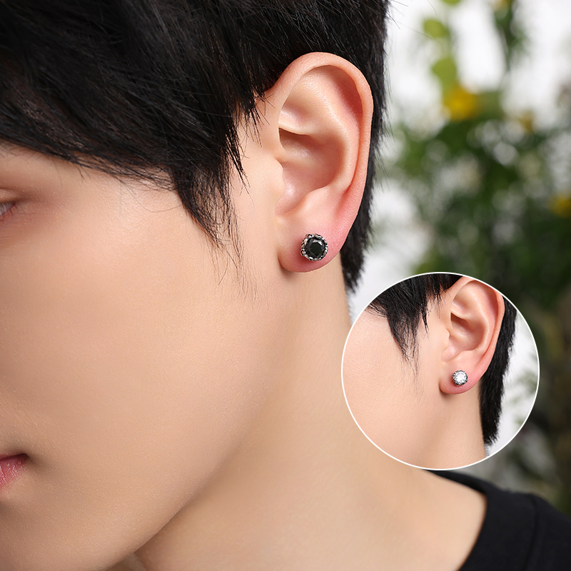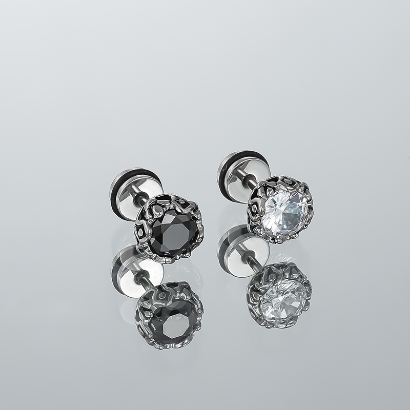 VOYAGE黑白锆石杠铃耳钉男款配饰