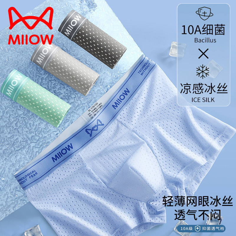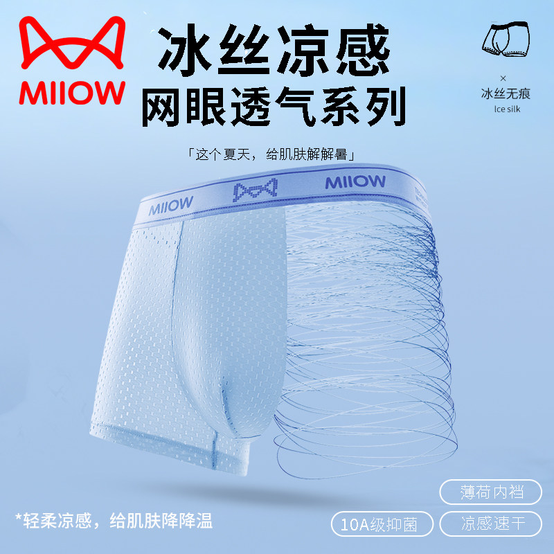 猫人男士内裤冰丝网孔10A抗菌