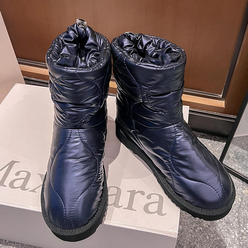 2022冬季外贸圆头平底羽绒布一脚蹬加厚大码雪地靴短靴女靴时装靴