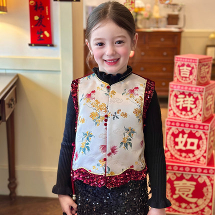 栀了成长记童装女童国风花卉马甲2025冬季儿童新中式夹棉无袖上衣