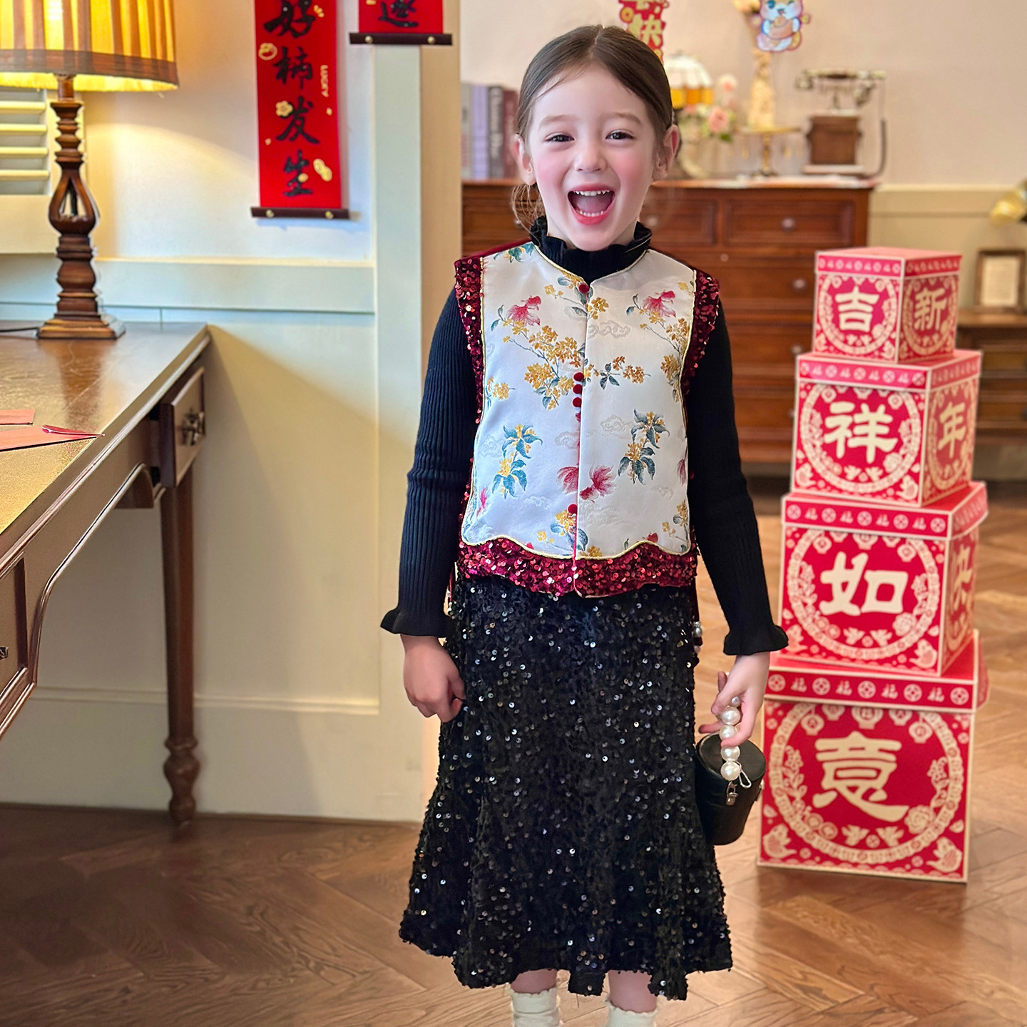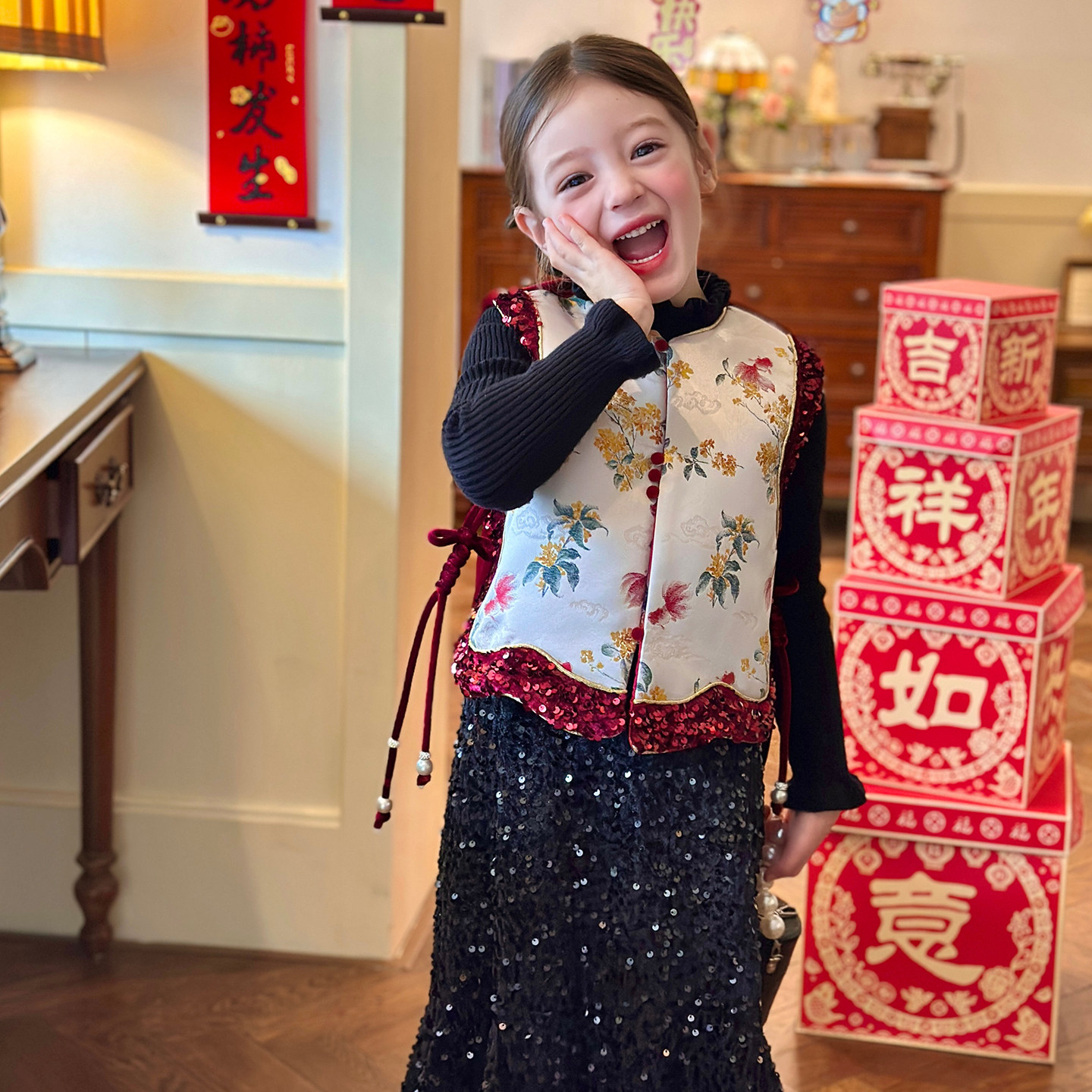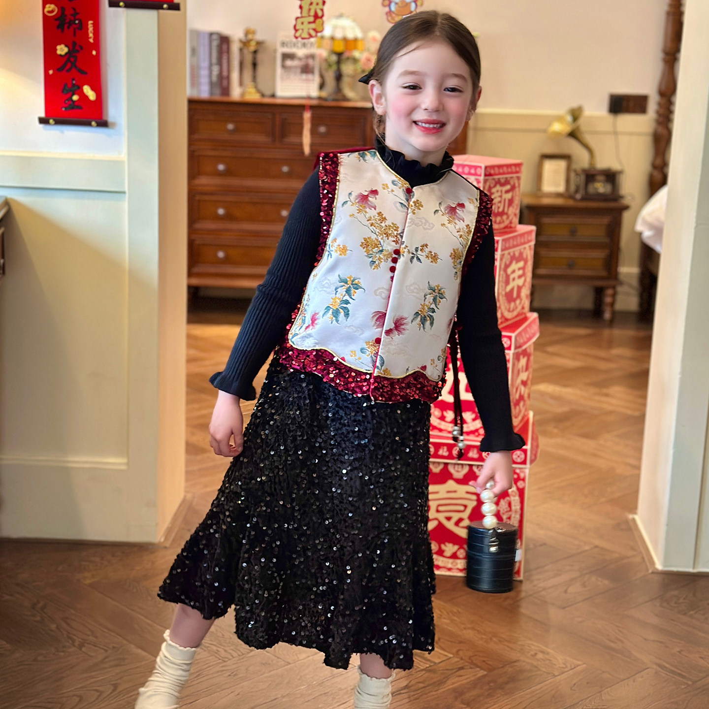 栀了成长记女童冬季国风夹棉马甲