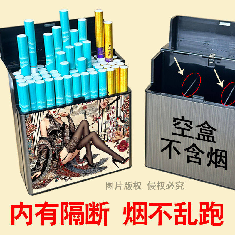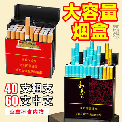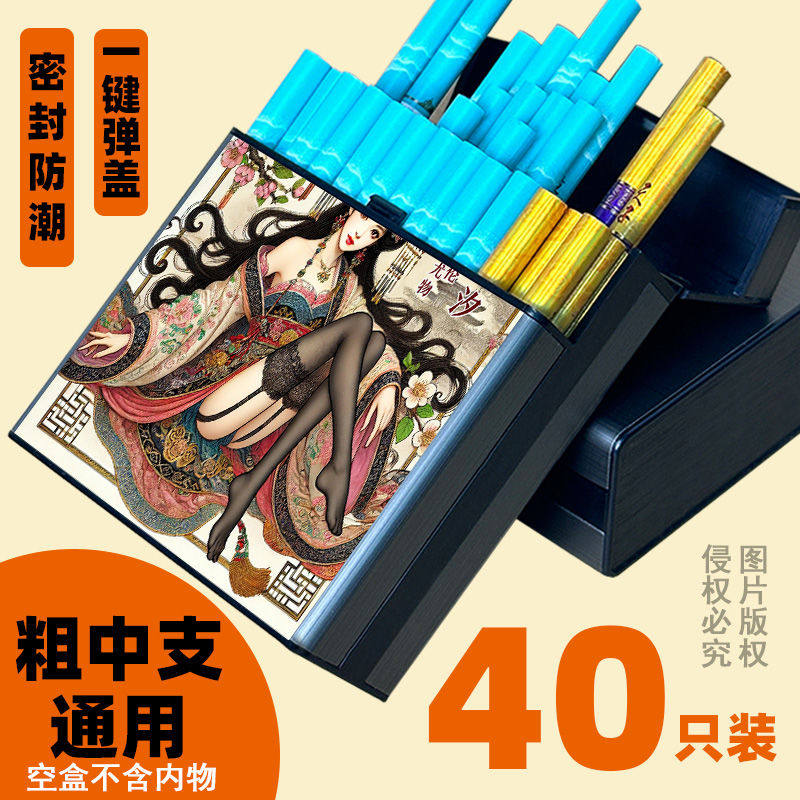 超大容量分格粗中支装40支通用烟盒便携防压防潮烟盒自动翻盖烟盒