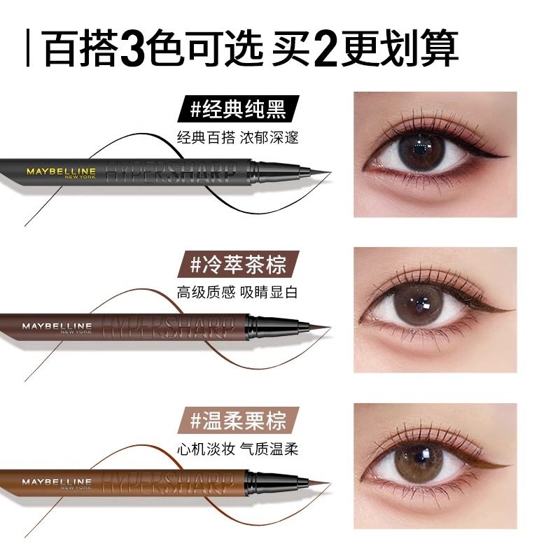 【自营】美宝莲眼线液笔开挂笔防水防汗防晕染持久极细防脱妆卧蚕