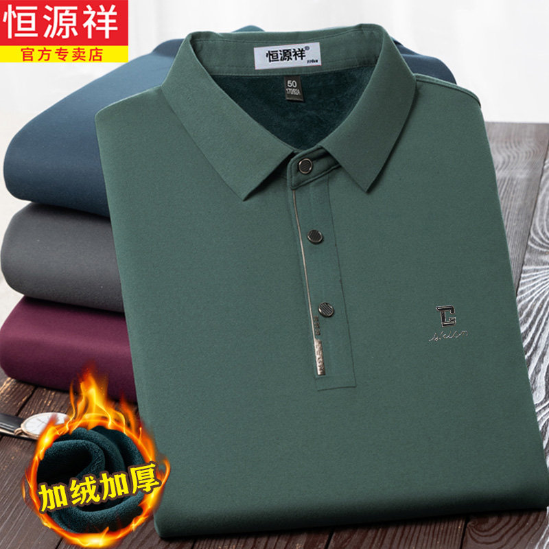 恒源祥羊毛长袖t恤男士翻领加绒加厚秋冬季中年保暖衣针织打底衫