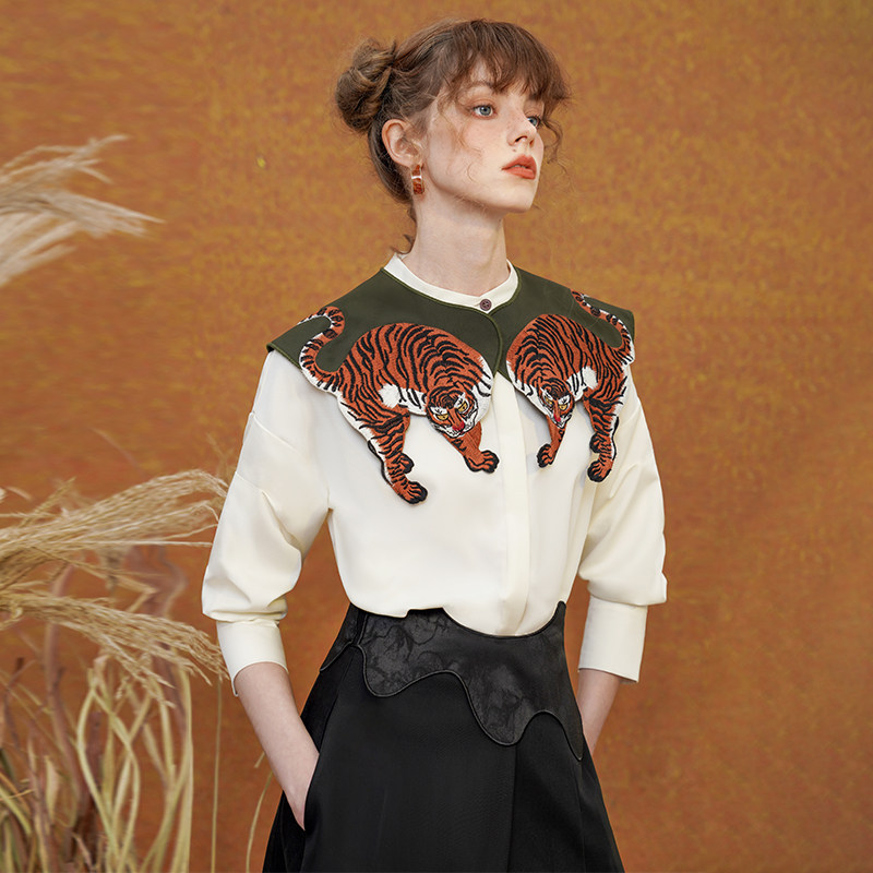 咖沫原创假领子女百搭老虎刺绣假领2025年新款小披肩领口小装饰