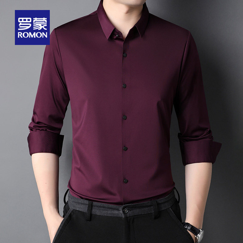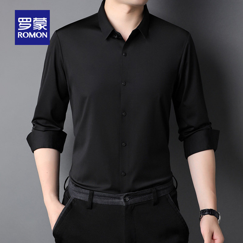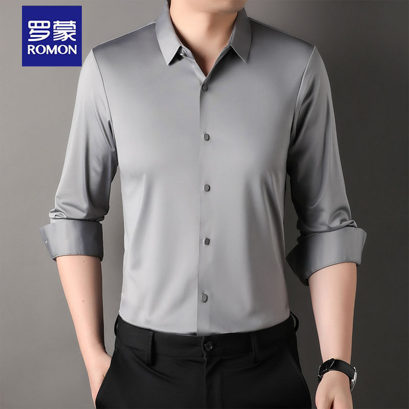 【高弹免烫】罗蒙男士长袖衬衫2026春秋新款纯色无痕职业工装衬衣