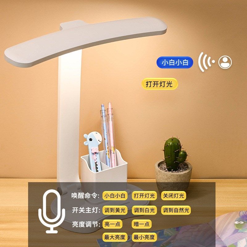 人工智能语音台灯LED调光折叠充插两用学生少儿阅读声控床头台灯
