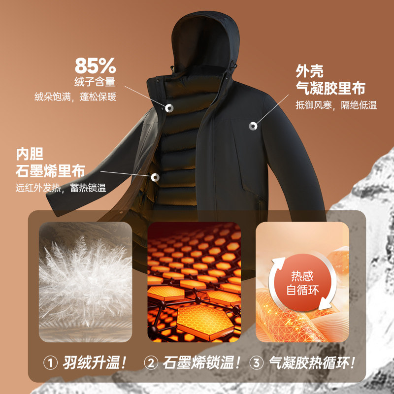 [石墨烯]七匹狼男士三合一羽绒服2025冬新款茄克保暖防水夹克外套