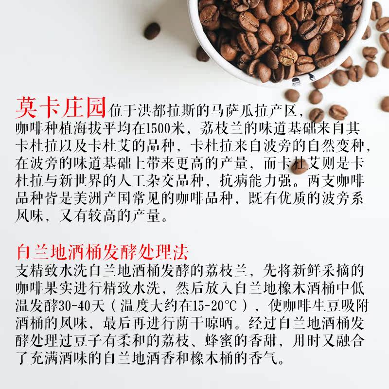 咖啡豆洪都拉斯荔枝兰白兰地酒桶发酵处理下单轻烘焙袋装手冲咖啡
