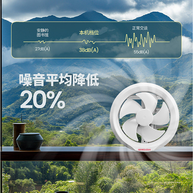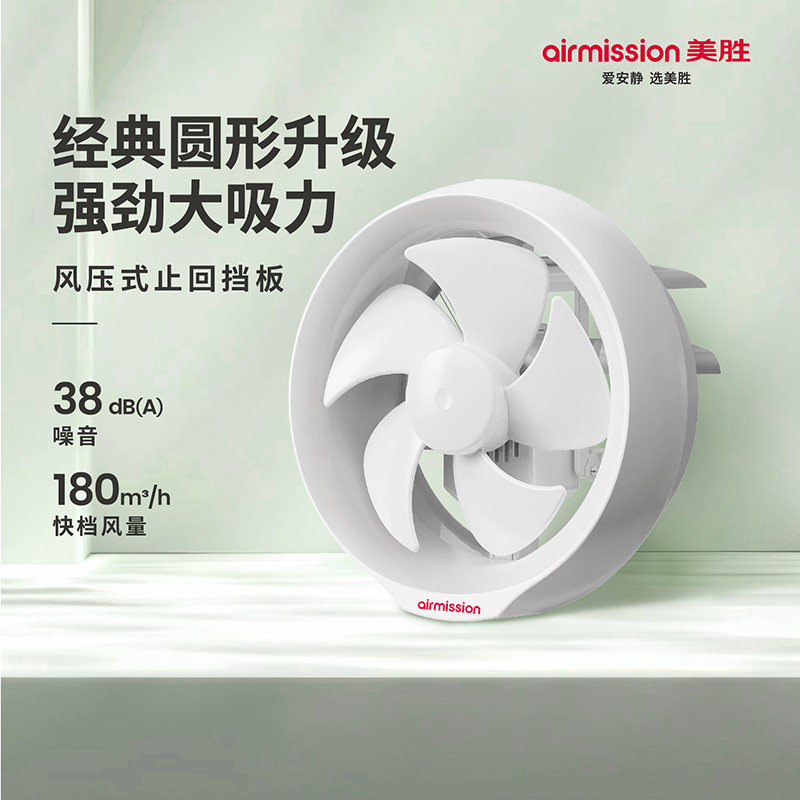 金羚美胜排气扇卫生间6/8寸换气扇变频节能玻璃窗式排风扇圆形扇