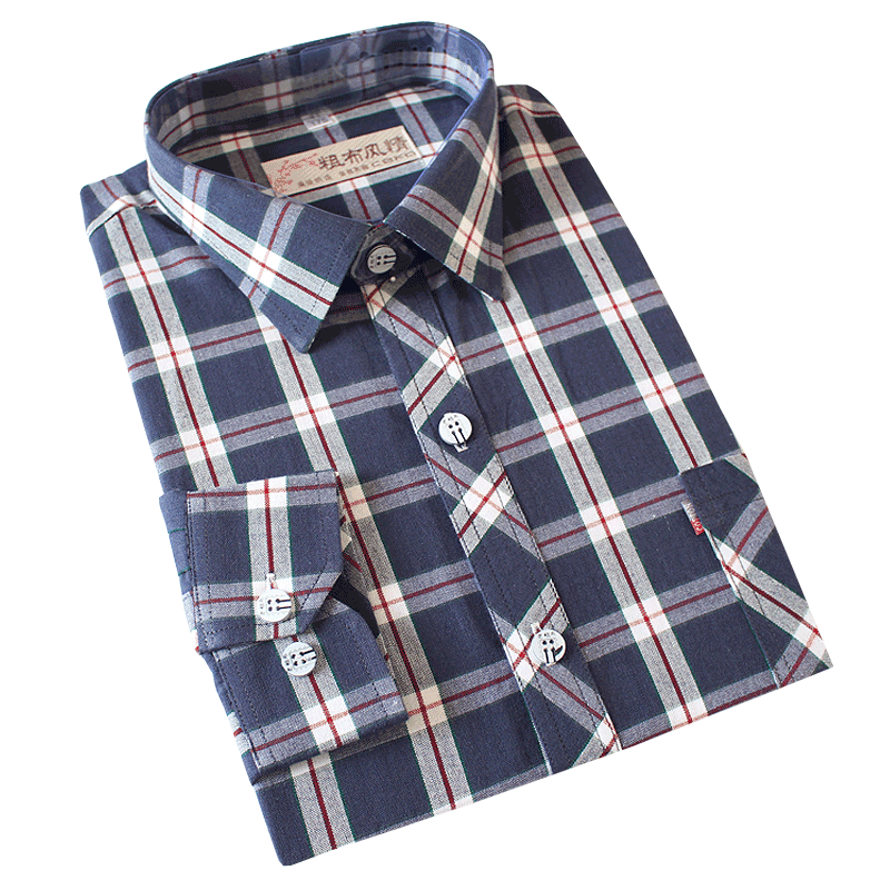 老粗布男士休闲条纹全棉格子衬衫