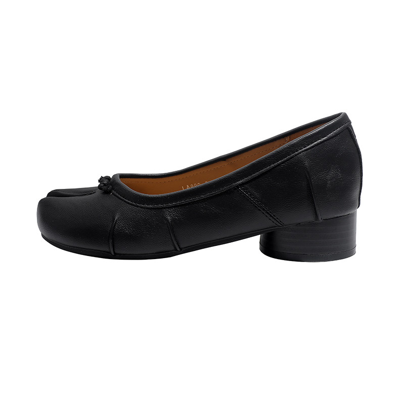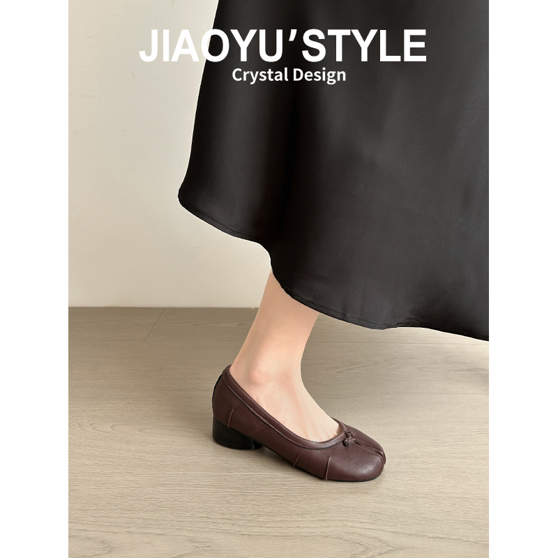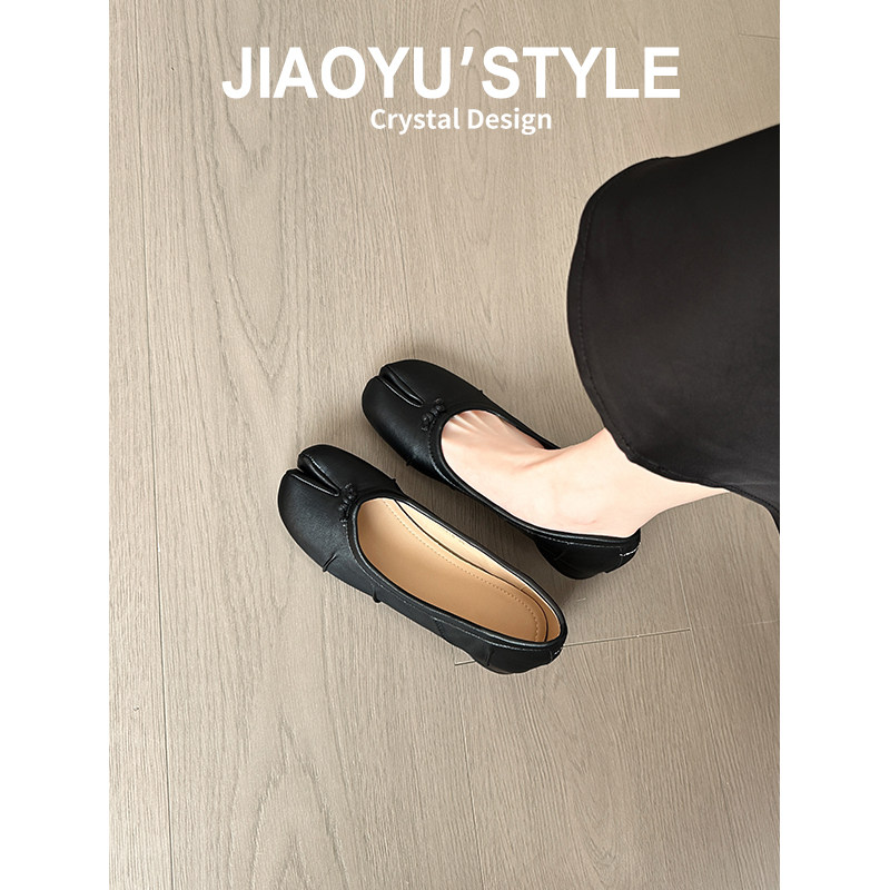 真皮~骄屿复古褶皱分趾芭蕾舞平底鞋早春新款百搭浅口玛丽珍单鞋