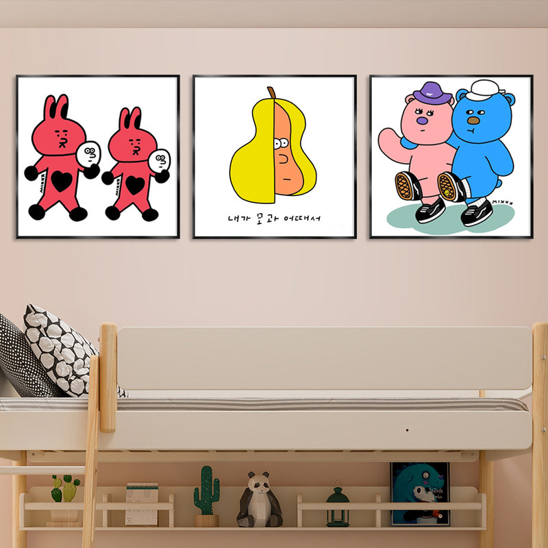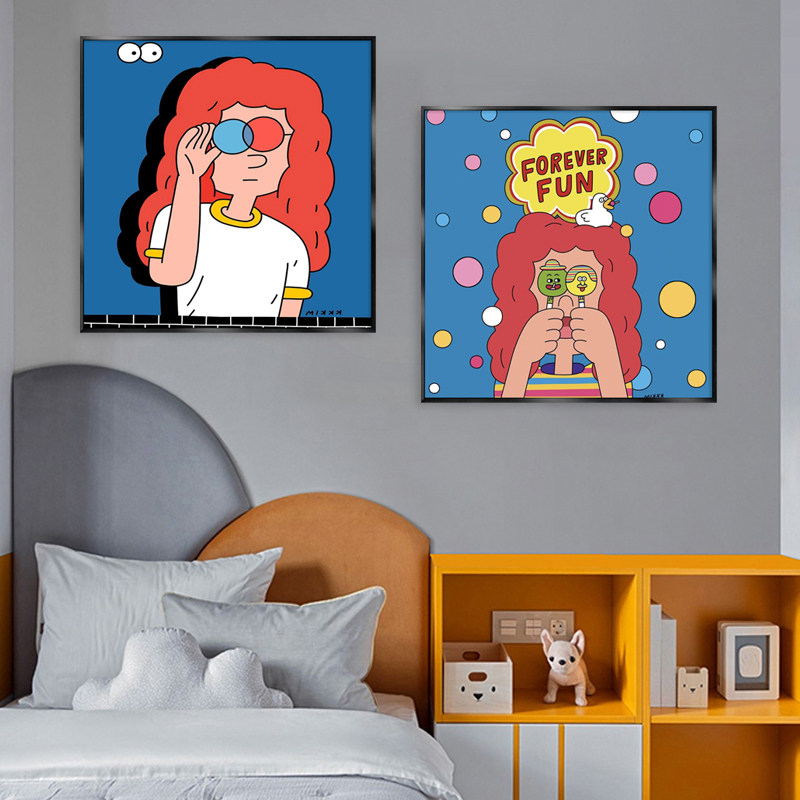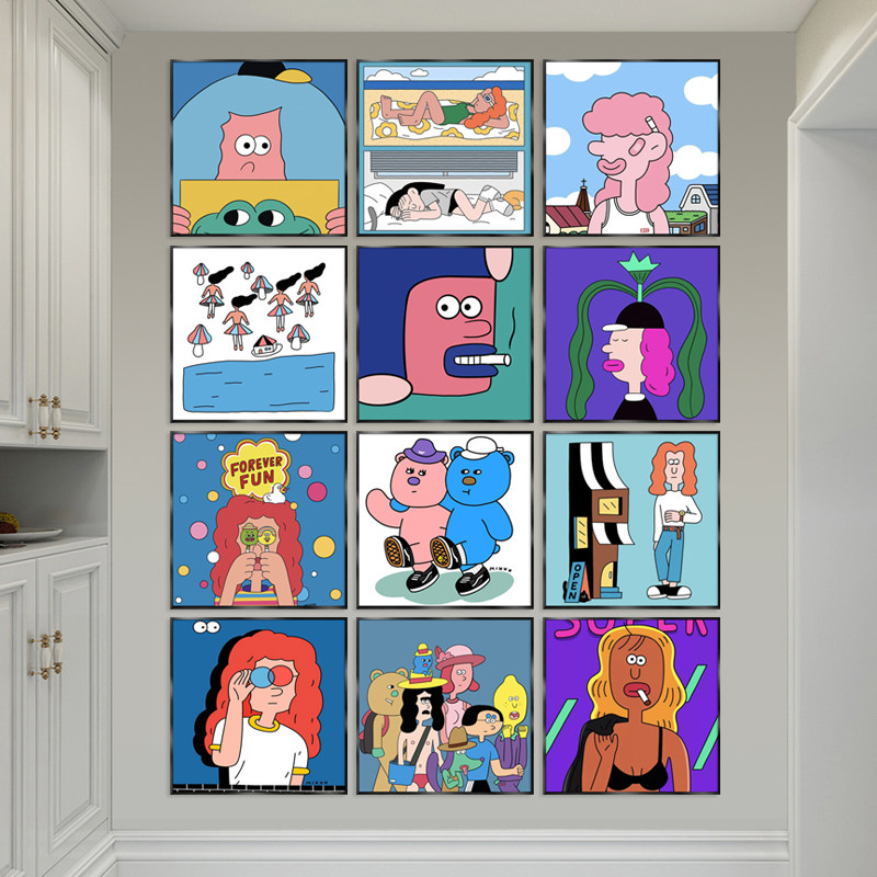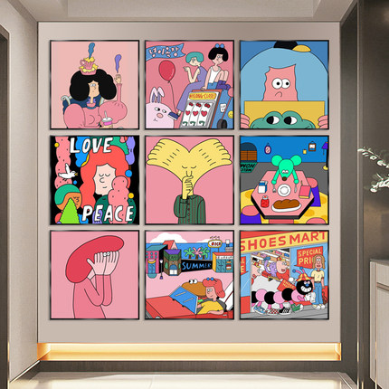免打孔潮流卡通客厅卧室挂画咖啡厅奶茶店装饰画搞怪韩国插画壁画