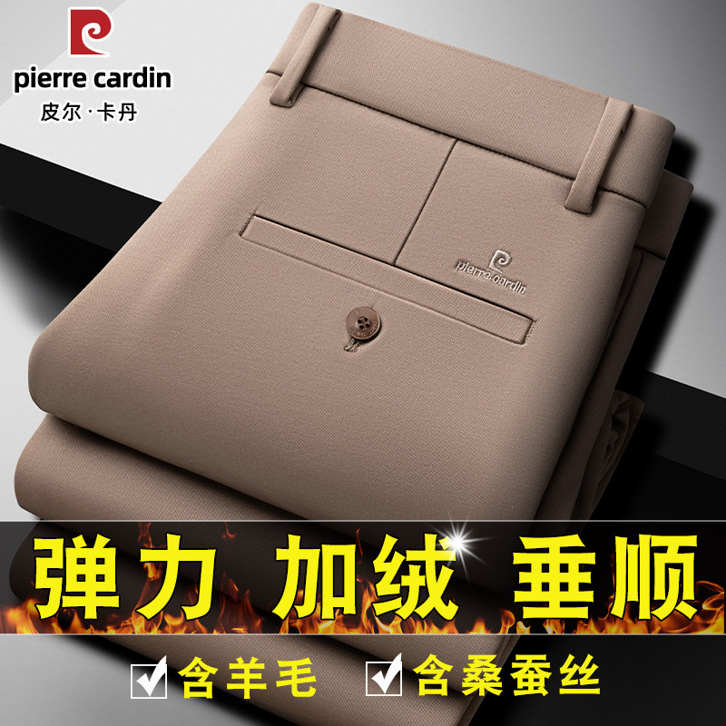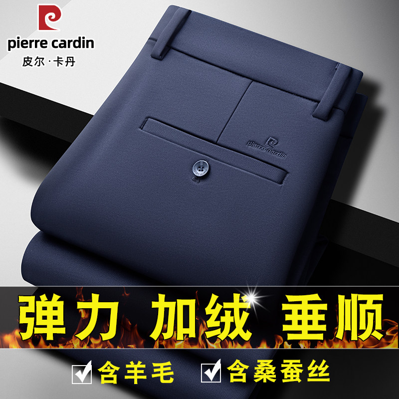 皮尔卡丹裤子男款冬季加绒加厚休闲裤羊毛男裤保暖西裤免烫长裤子