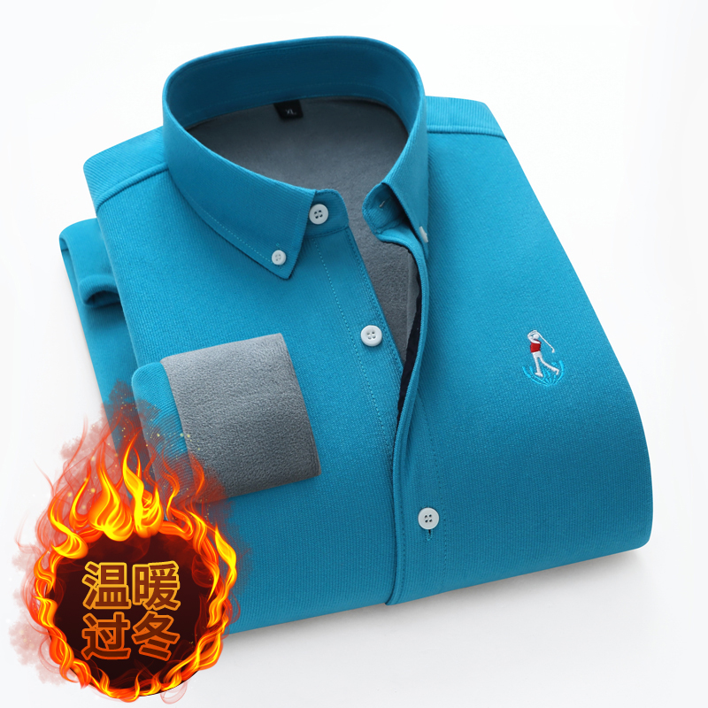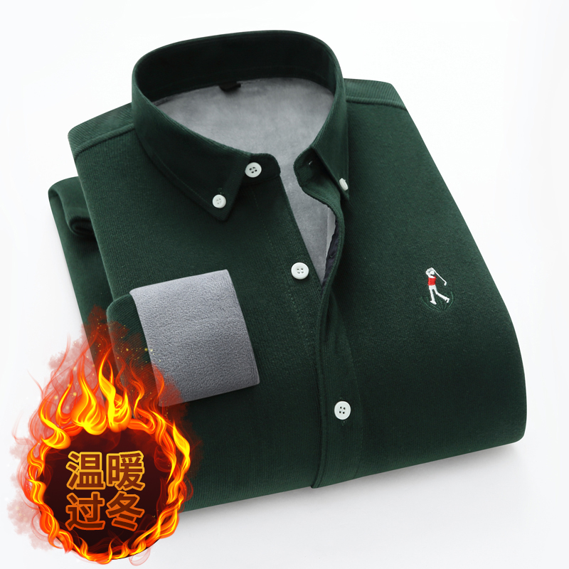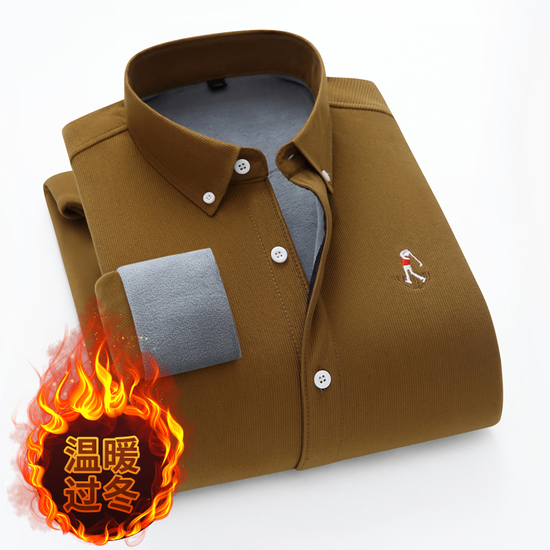 冬季休闲灯芯绒男士保暖衬衫男长袖加绒加厚中老年寸衫纯色爸爸装