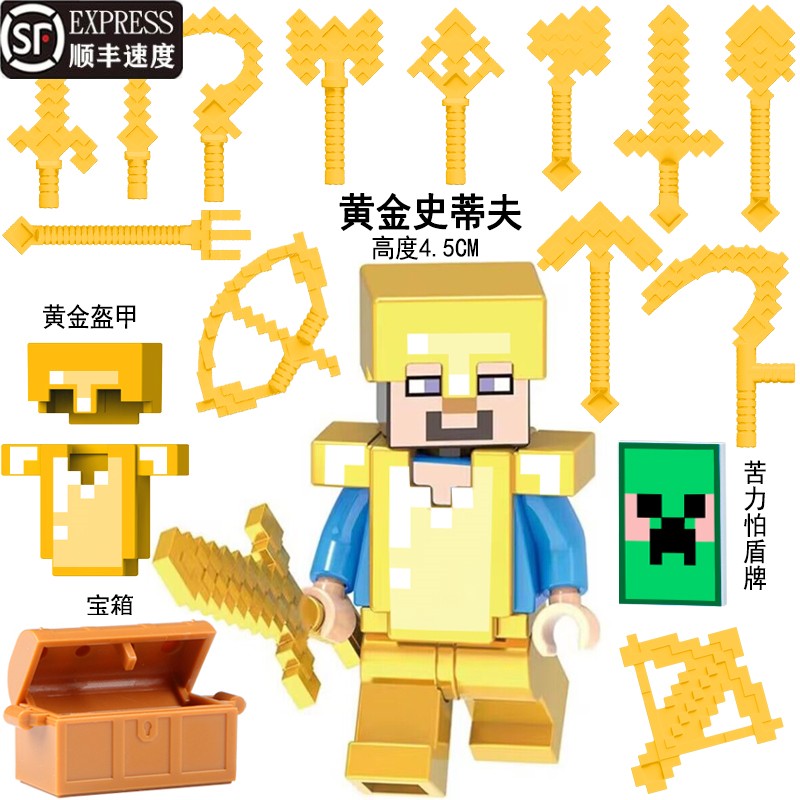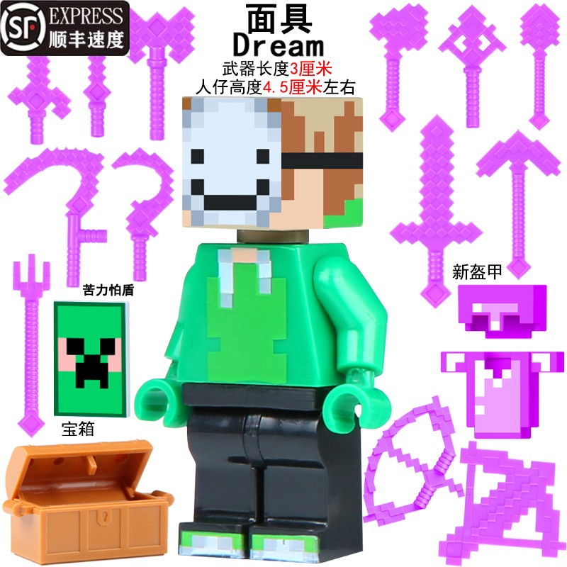 兼容乐高新品我的世界积木雾中人钻石套史蒂夫人仔武器盔甲玩具