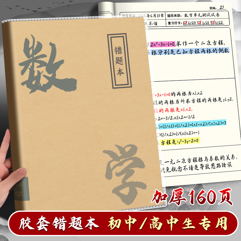 错题本初中生专用胶套纠错本数学B5加厚高中生错题集记录本改错整理本小学生四五六年级英语语文订正笔记本子