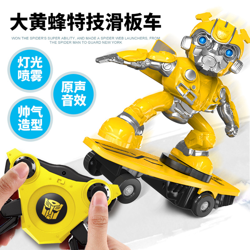 变形金刚特技滑板车翻滚遥控汽车充电动机器人儿童玩具喷雾大黄蜂