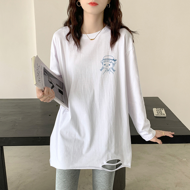 2025春季新款女装白色内搭打底衫秋冬德绒破洞中长款长袖t恤上衣