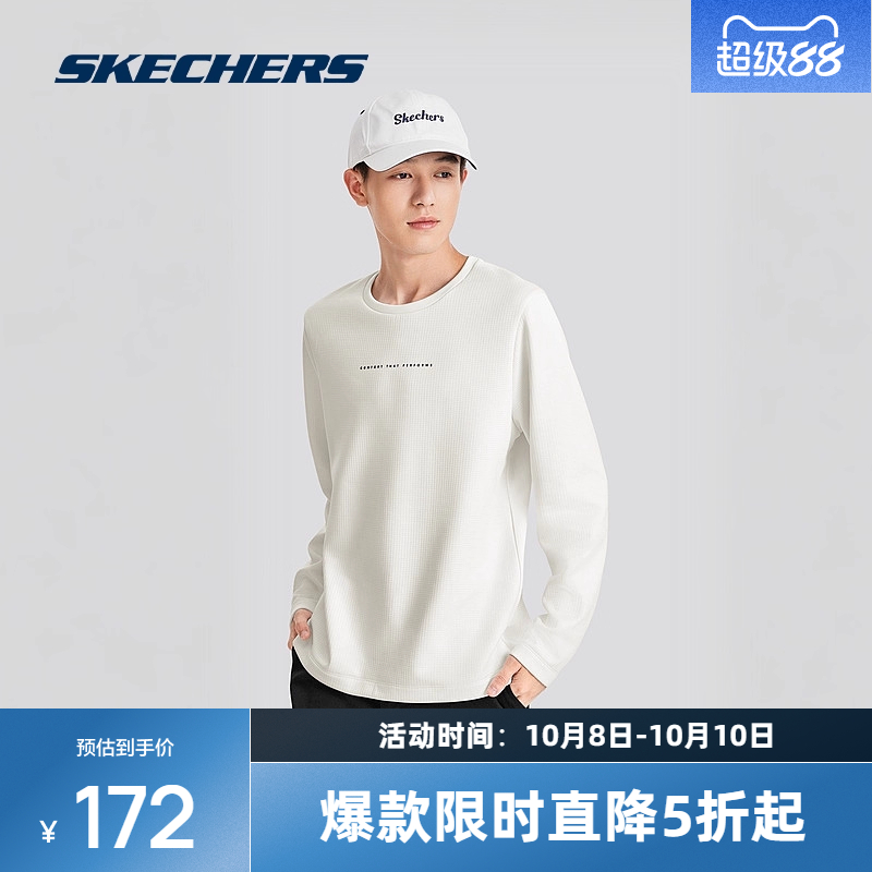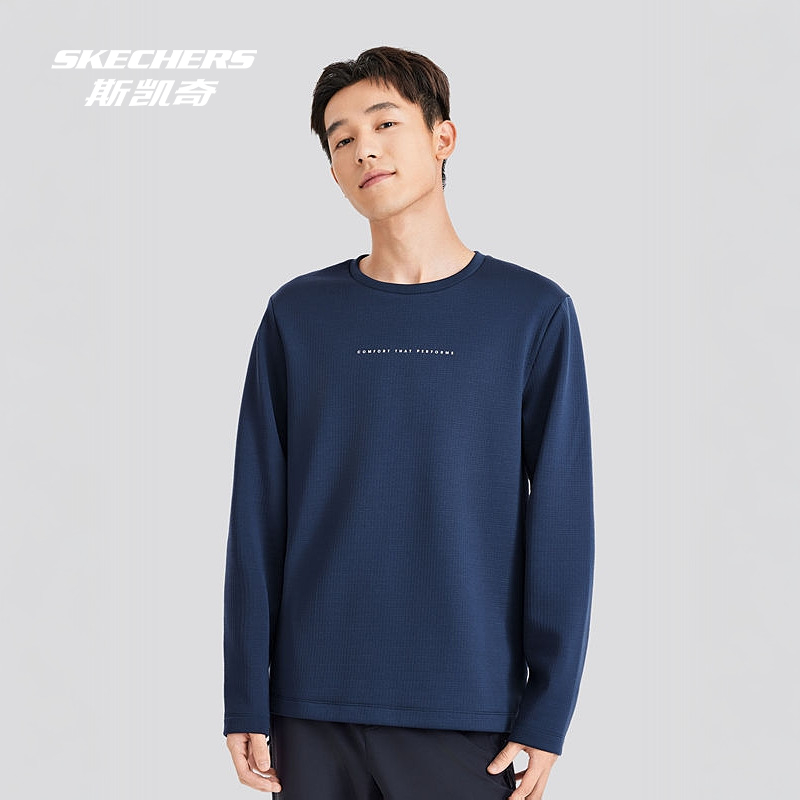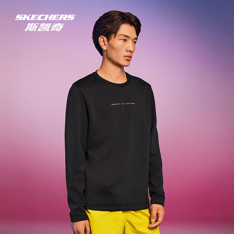 斯凯奇男款舒适柔软保温蓄热简约百搭针织长袖T恤衫时尚上衣
