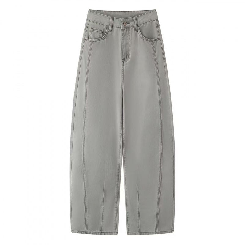 商场同款2025春夏新款薄新款灰色哈伦牛仔裤女高腰宽松显瘦九分弯