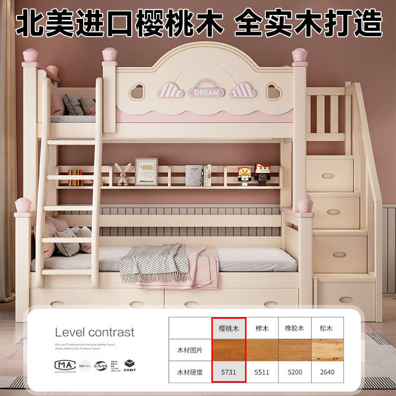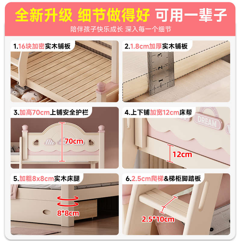 全实木上下铺双层床儿童床高低床子母床可拆分双层床两层床上下床