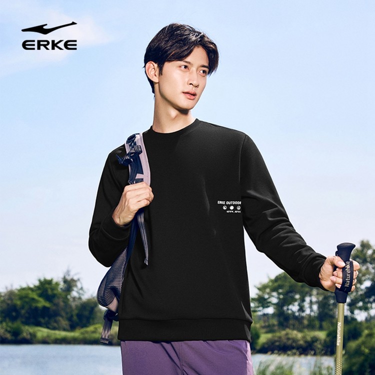 鸿星尔克加绒卫衣男款2025秋季新款男士圆领运动户外套头长袖上衣
