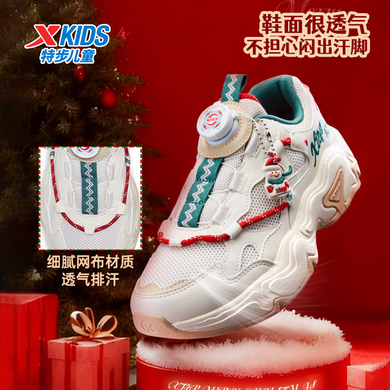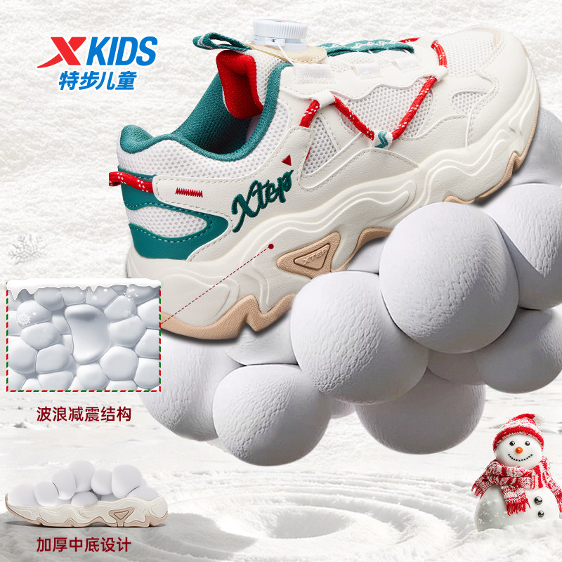 特步童鞋圣诞冬季新款儿童运动鞋男童耐磨休闲鞋男孩鞋子板鞋女童