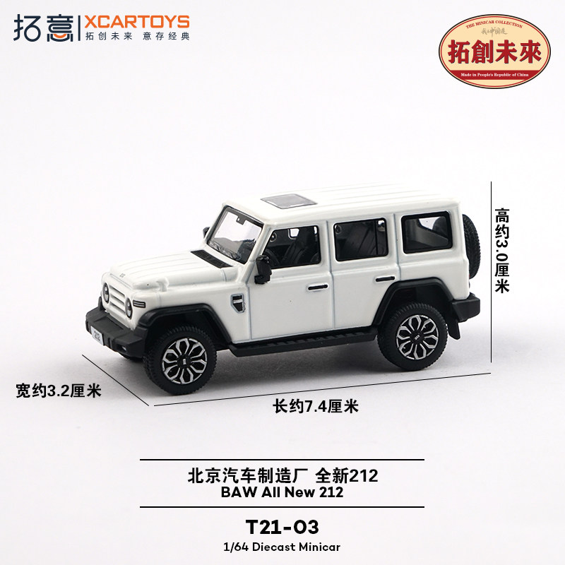 拓意1/64合金仿真国产北京越野SUV收藏摆件全新212吉普白汽车模型