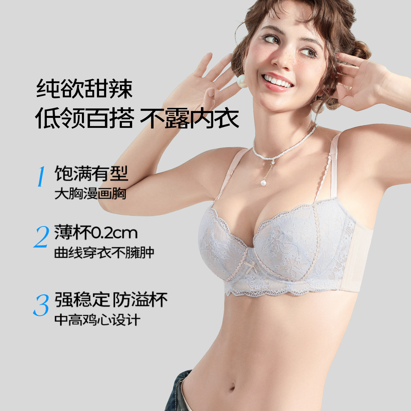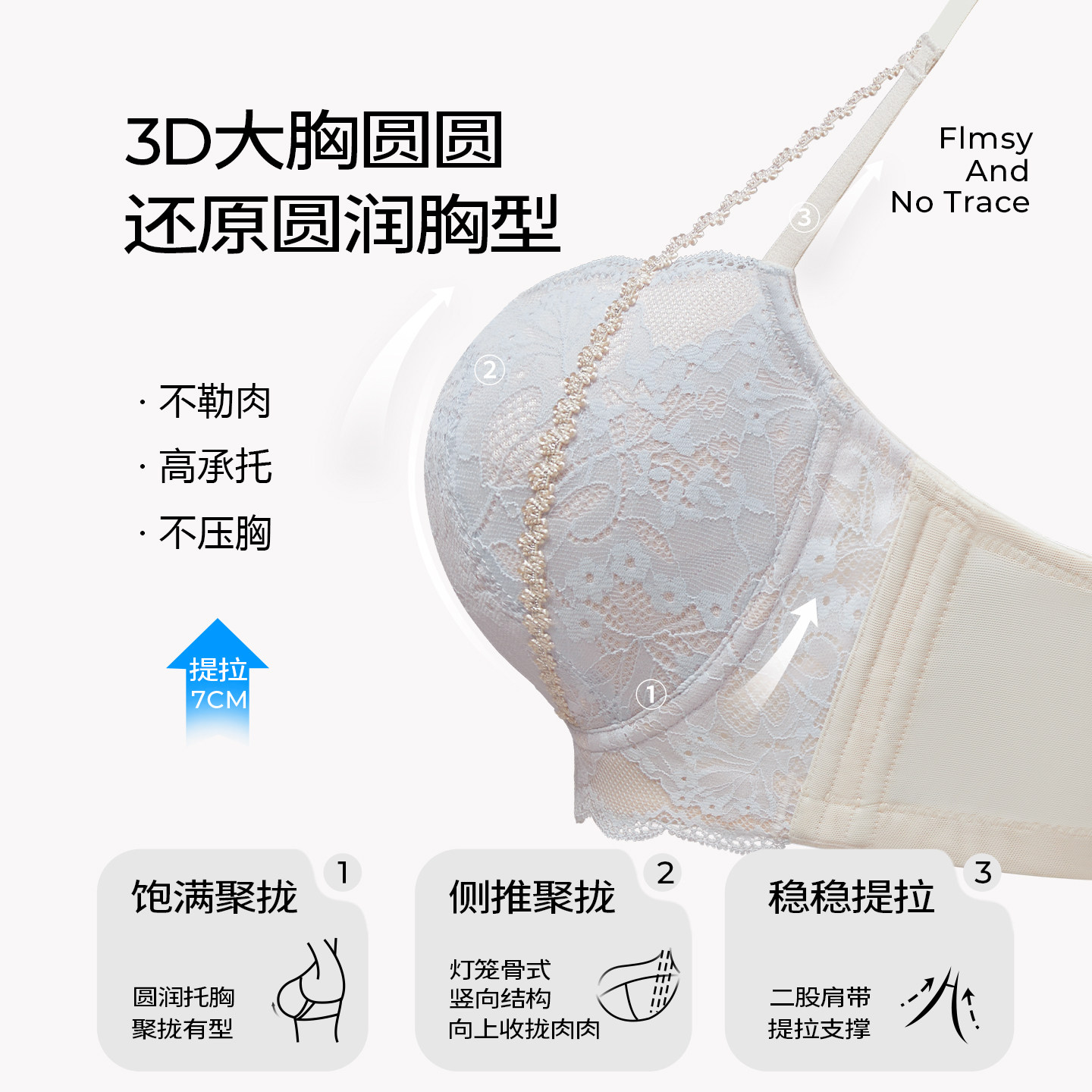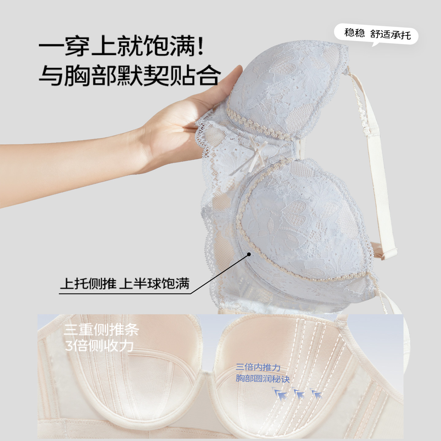 糖粒内衣女大胸显大小性感大码聚拢上托防下垂聚拢调整型文胸罩薄