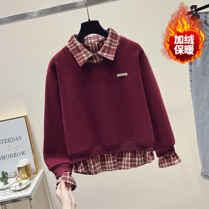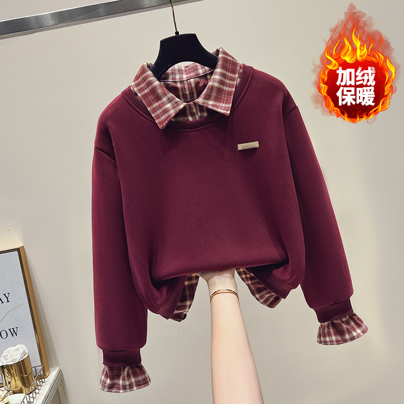 高中生学院风加绒加厚卫衣女宽松初中学生冬季假两件翻领上衣外套