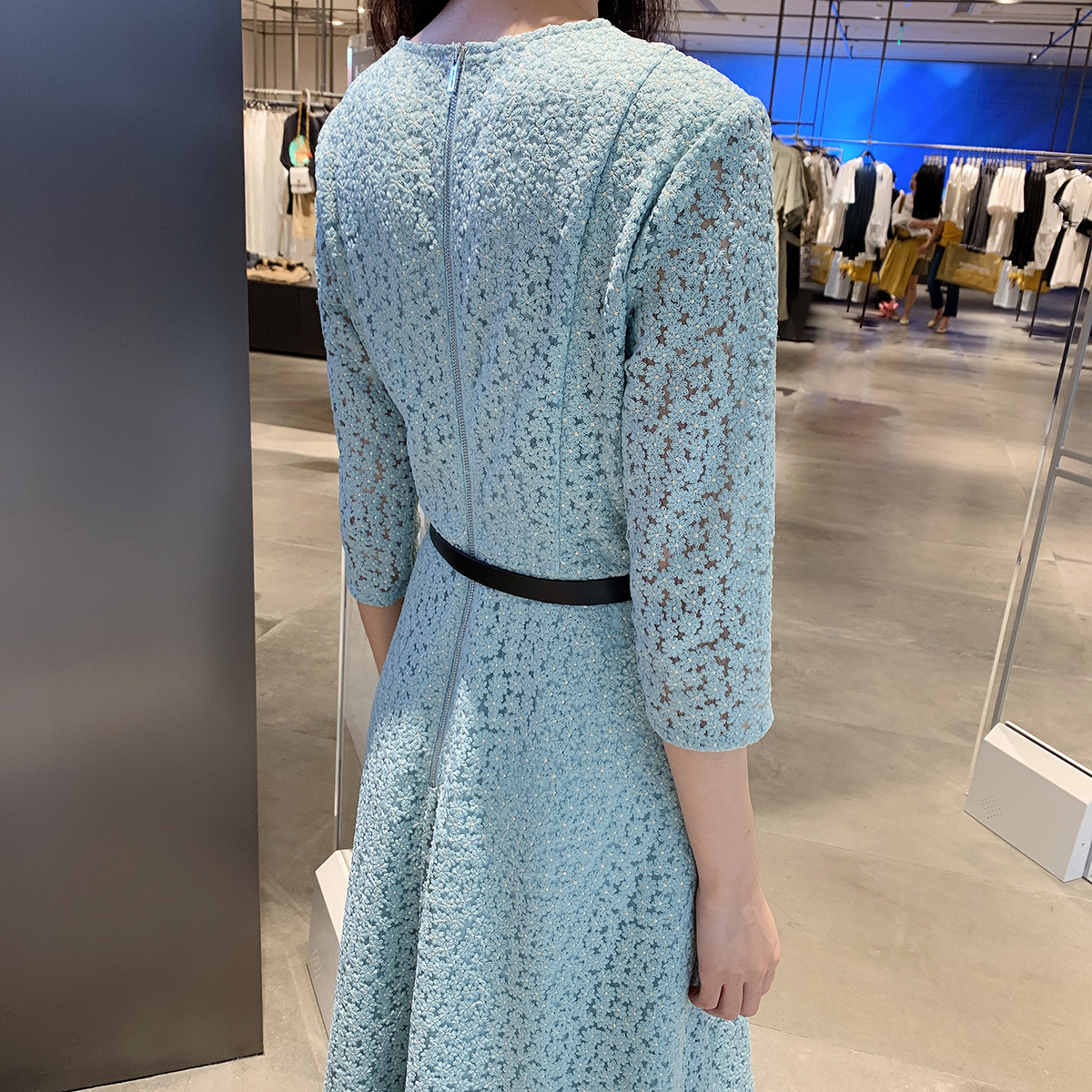 秋高端重工重磅水溶蕾丝勾花镂空名媛风连衣裙A字收腰中长裙优雅