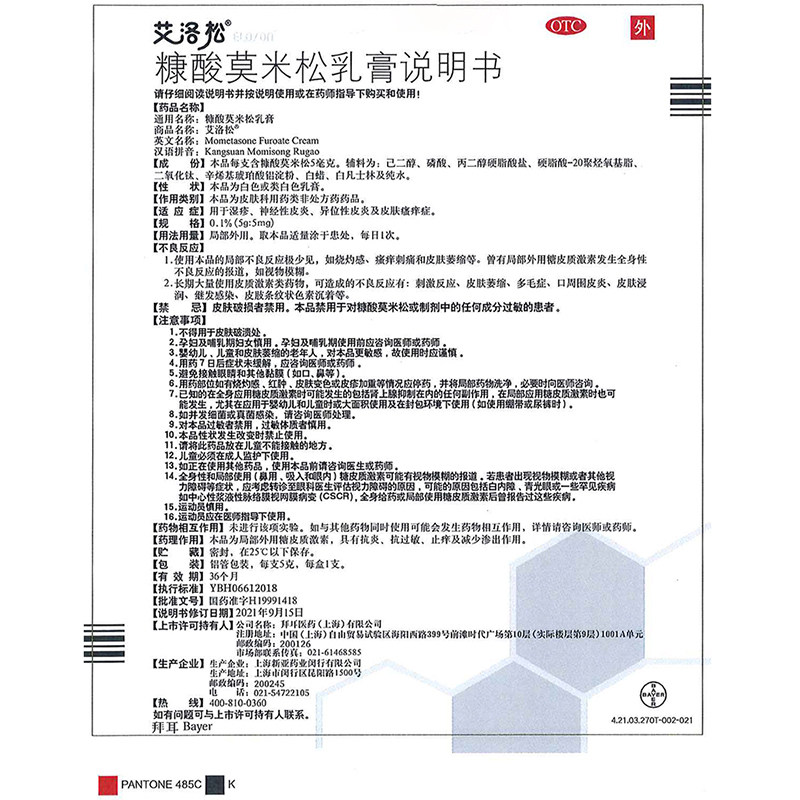 【自营】【艾洛松】糠酸莫米松乳膏0.1%*5g*1支/盒湿疹神经性皮炎皮肤瘙痒症